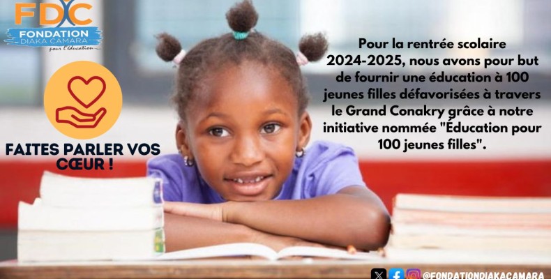 Projet qui consiste à scolariser 100 jeunes filles, scolarisés ou déscolarisés, pour la rentré scolaire 2024-2025 dans le but de d'augmenter le taux d'alphabétisation, de soutenir les plus démunies et les orphelins pour qu'ils puissent bénéficier d'une bonne éducation.