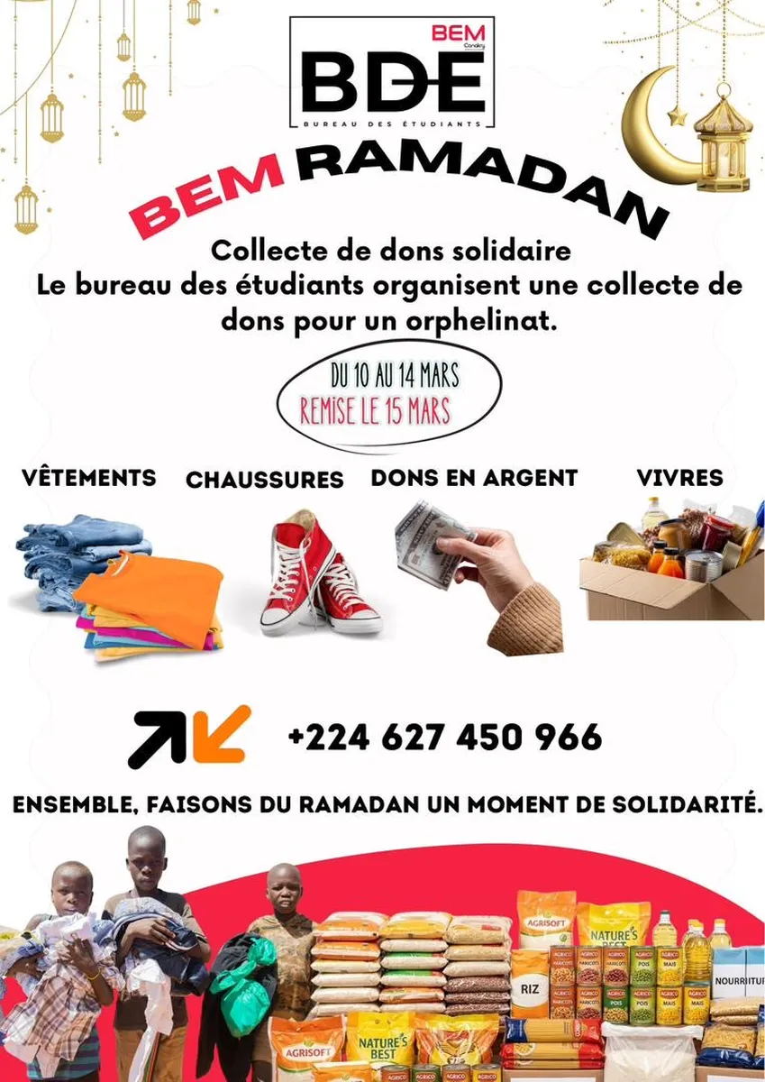 Dans le cadre du projet BEM Ramadan, nous organisons une collecte de fonds afin d’apporter du soutien aux orphelinats et venir en aide aux personnes d...
