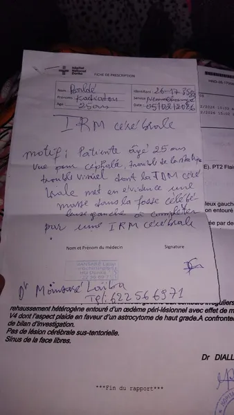 Bonsoir Monsieur ou Madame Je viens auprès de vous pour vous parler d’une maladie d’une de nos sœurs,elle souffre d’une Tumeur Célèbrale et cela ...